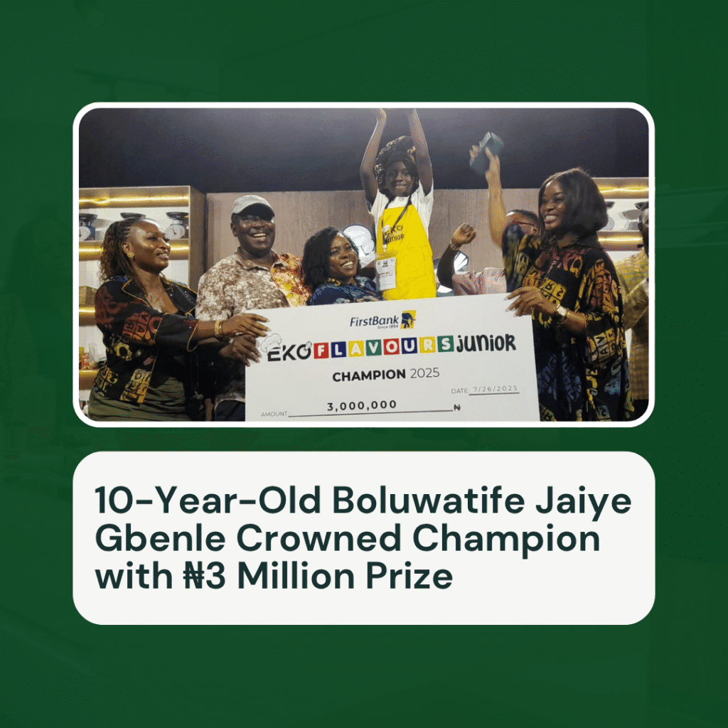 In a heartwarming celebration of talent, passion, and Nigeria’s rich food culture, 10-year-old Boluwatife Jaiye Gbenle emerged as the grand